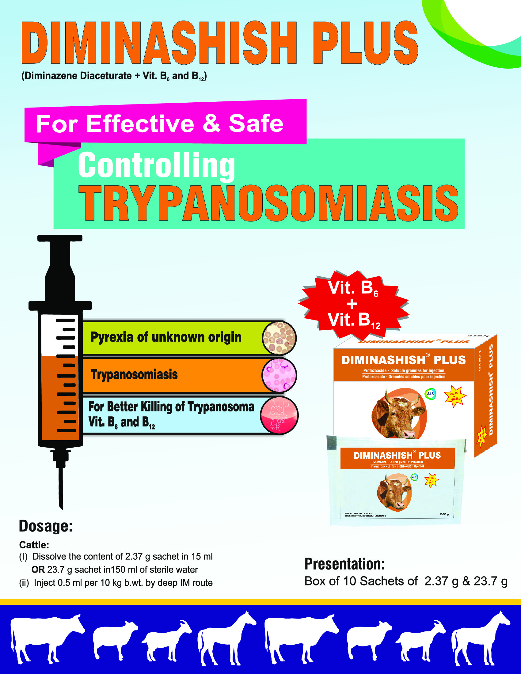 Effective and safe control of Trypanosomiasis with Diminazene Diaceturate combined with Vitamins B6 and B12.