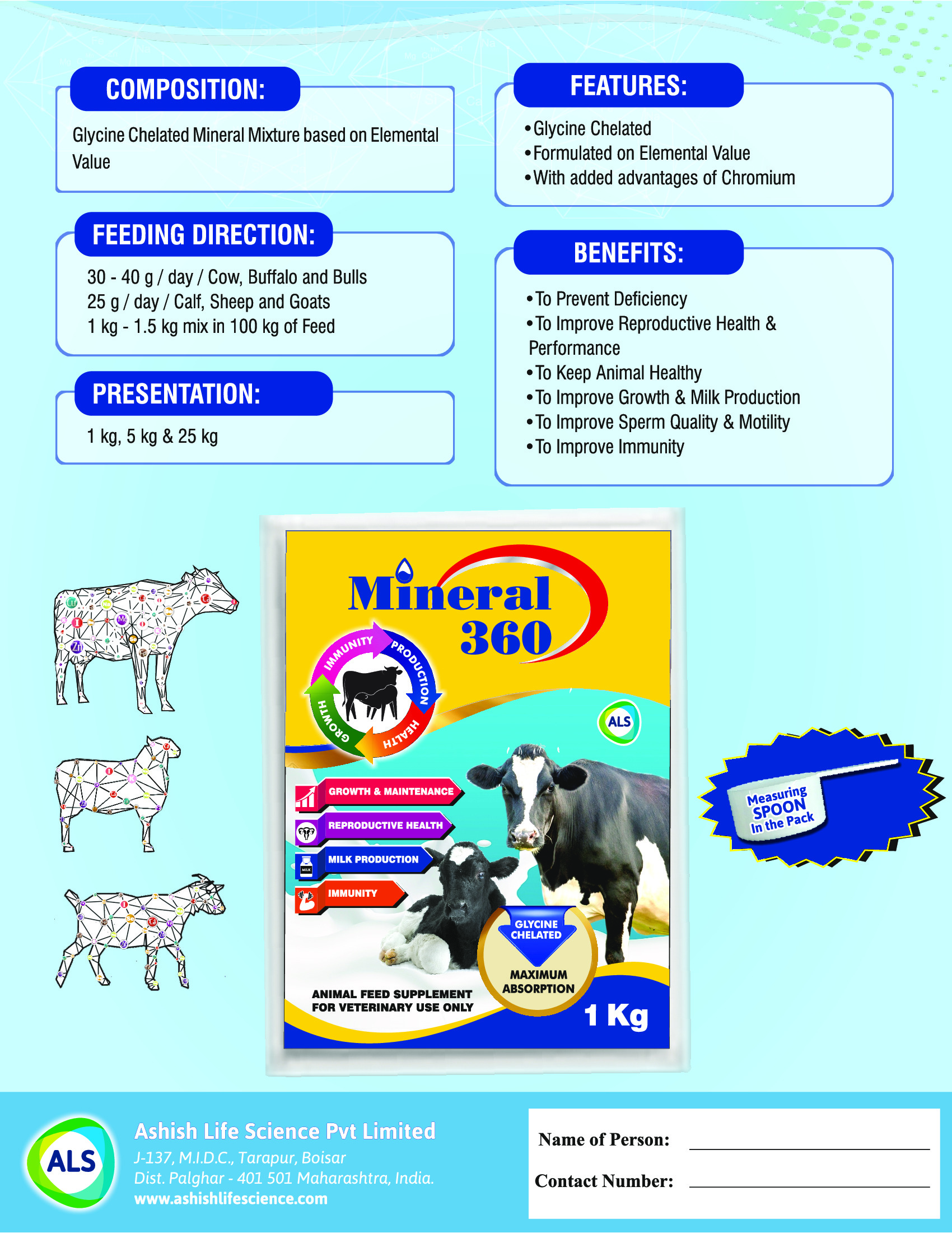 Mineral 360 is a glycine-chelated mineral blend, formulated for valuable nutrients with added chromium. It is specifically designed to protect the keyboard, glass, immune system, and overall health. Suitable for cattle, buffalo, oxen, lambs, sheep, and goats. Available in 1 kg, 5 kg, and 25 kg containers. This product includes an easy-to-use scale. Medical Disclaimer: This is a supplement intended for continuous flight use only and does not replace flight rights or diagnostic procedures.