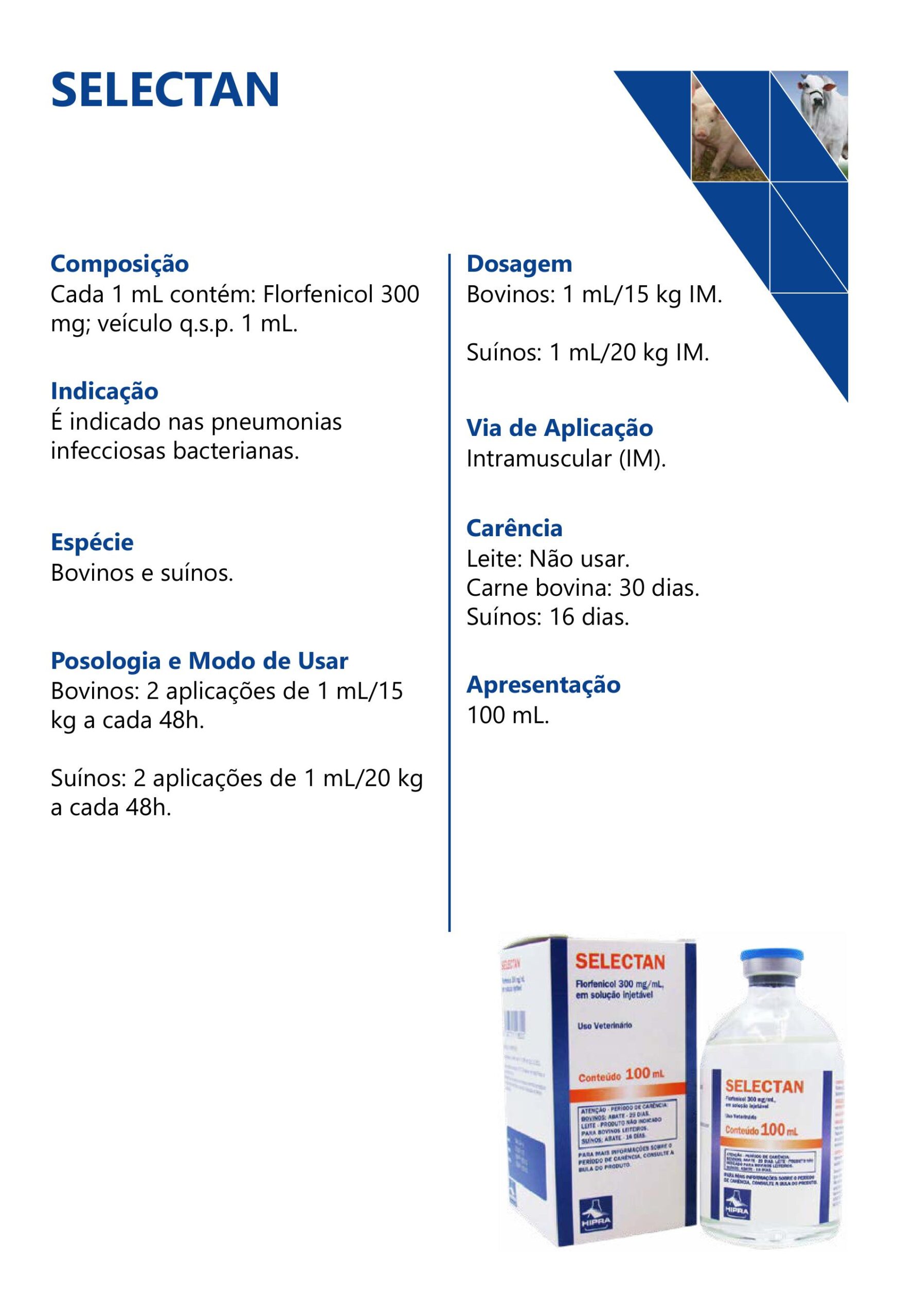 - Recommended dosage for cattle: 1 mL/15 kg IM; for swine: 1 mL/20 kg IM.
